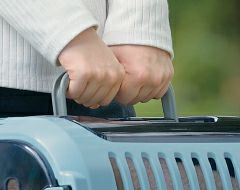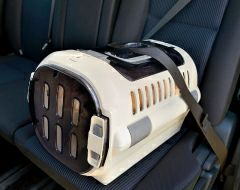ペットを守る丈夫なハードタイプのダブルドアキャリーです。