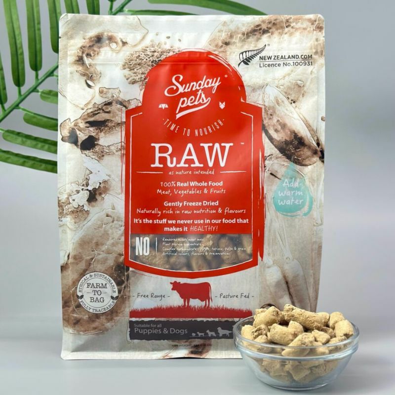 その他追加項目:SundayPets®ロー・ビーフは完全な食事であり、単独の食事として給餌することができます。