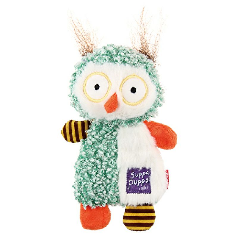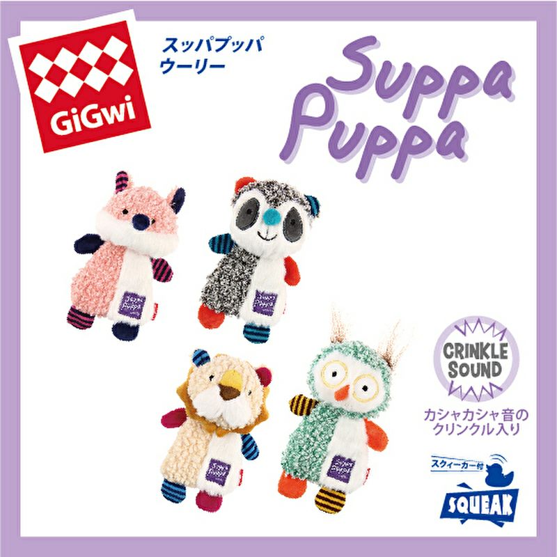 体の小さなパピーや小型犬でも楽しく遊べるよう工夫を凝らしたドッグトーイです。様々な噛み心地の生地を使用し、カシャカシャ音が楽しいクリンクル素材が入っていて、パピーからシニアまで幅広い愛犬が夢中になって遊べます。フラットなボディーはくわえやすく、パピーが初めて接するトーイとしてもおすすめ♪頭にスクィーカーが入っています。