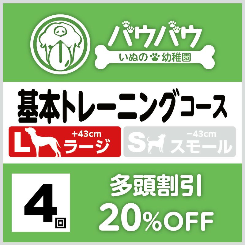 【11月分】 基本トレーニングコース月4回(ラージ) 多頭割引:20%off